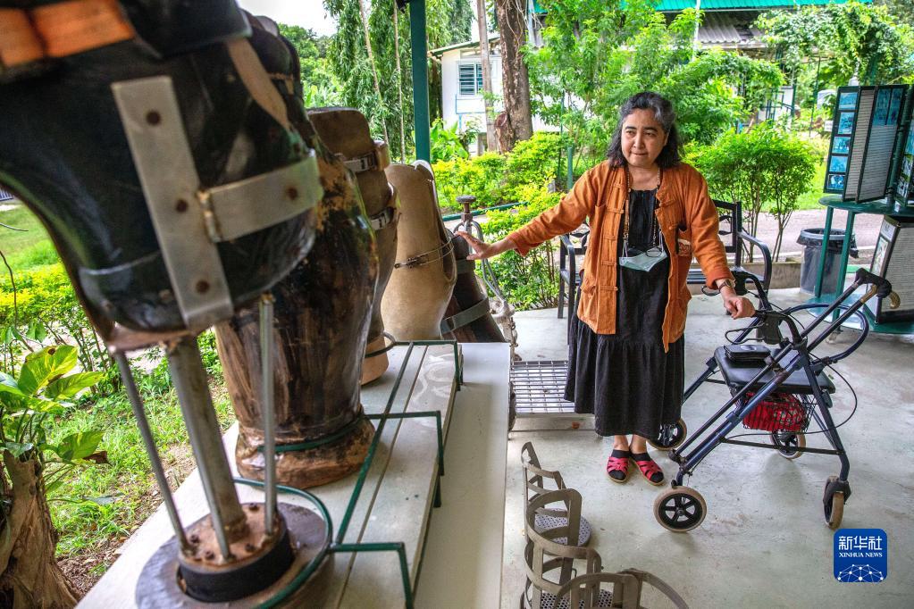 8月6日,在泰國南邦府“亞洲象之友”大象醫院,蘇賴達·薩瓦拉介紹為大象制作的假肢。