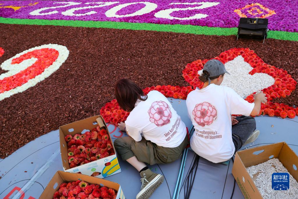 8月12日,工作人員在比利時布魯塞爾大廣場鋪裝“鮮花地毯”。