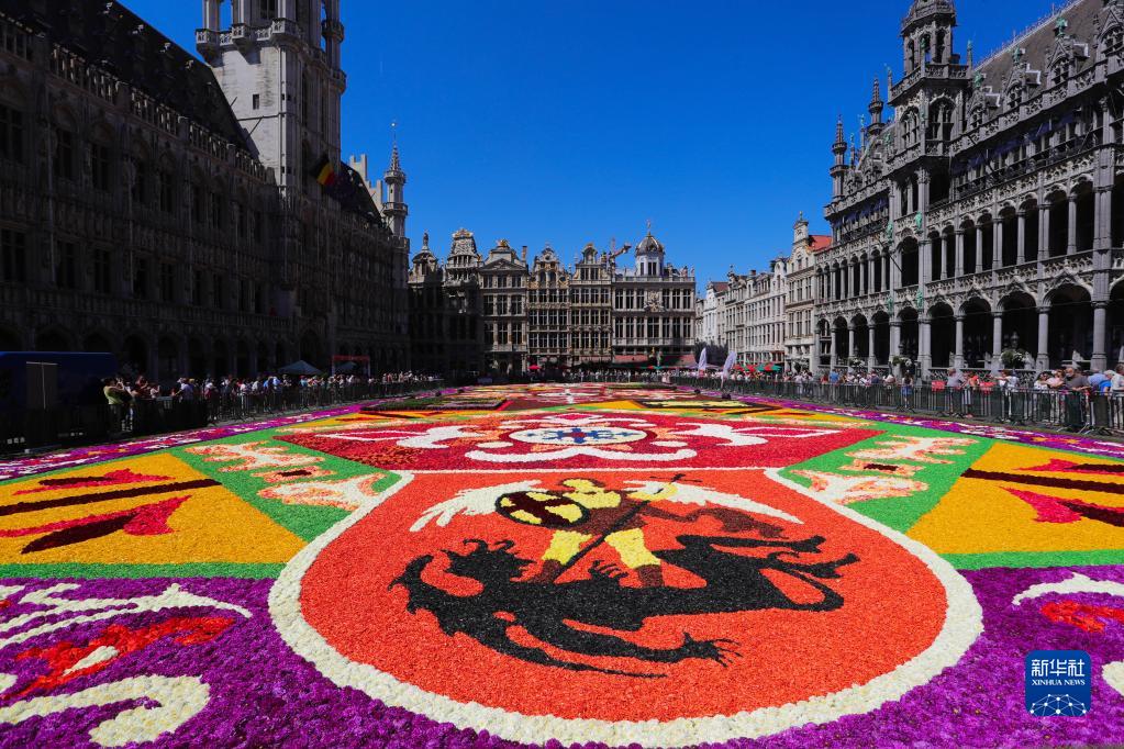 8月12日,民眾在比利時布魯塞爾大廣場參觀“鮮花地毯”。