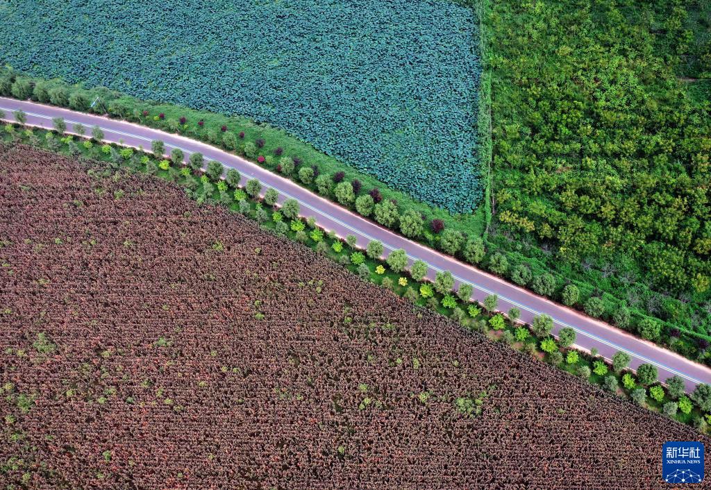 這是8月11日在河南省洛陽市孟津區拍攝的黃河生態廊道(無人機照片)。