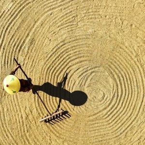 8月13日,在常寧市板橋鎮長沖鋪村,村民晾曬稻谷(無人機照片)。