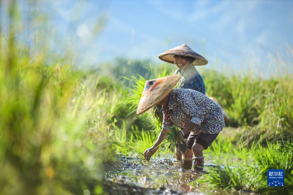 當日是立秋節氣,農民搶抓農時勞作,一派繁忙景象。