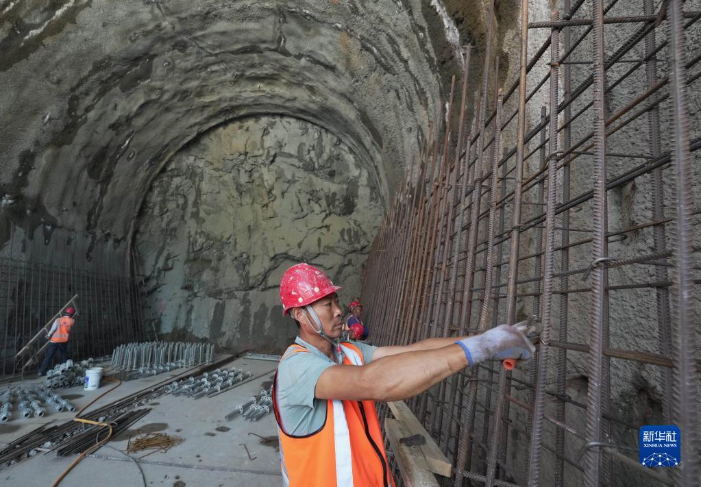 8月13日,工人在秦皇島市撫寧抽水蓄能電站建設工地施工。
