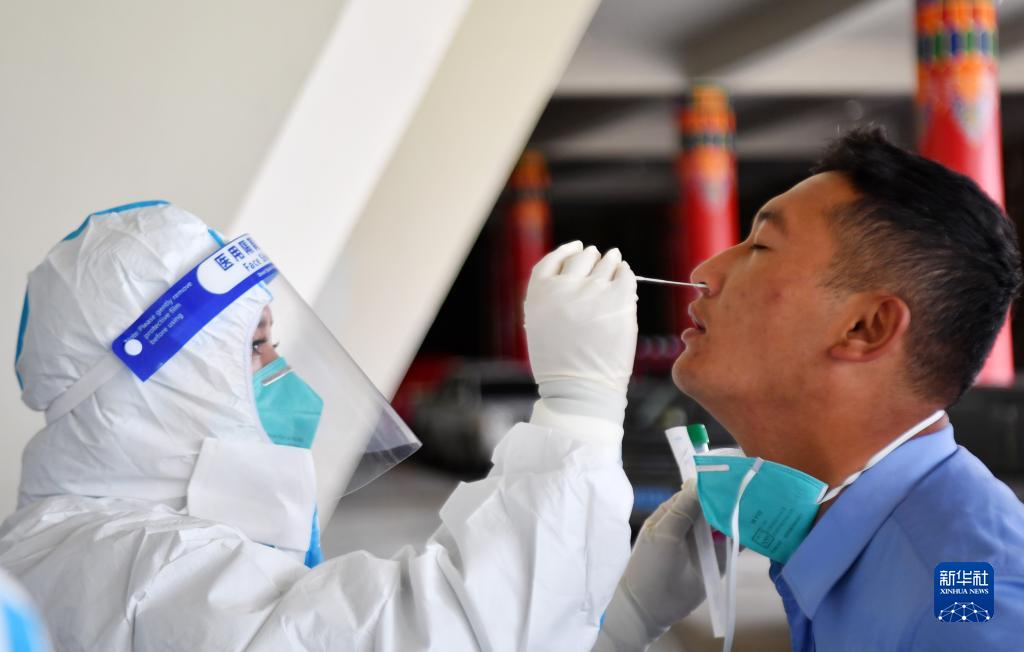 8月14日,拉薩市繼續開展核酸檢測。這是市民接受核酸采樣。