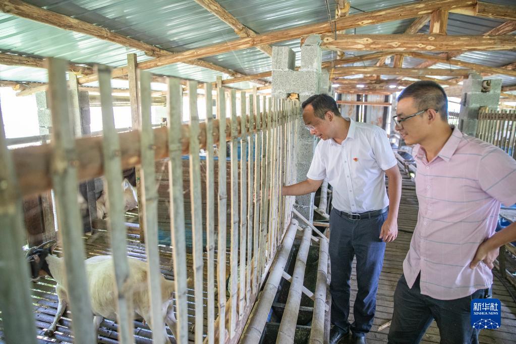 8月11日,在重慶市巫溪縣田壩鎮雙箭村,駐村第一書記廖正步(左)和駐村隊員在查看牲畜養殖情況。