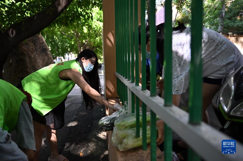 8月14日,吳凡力(左二)、張海洋在為市民配送生活物資。