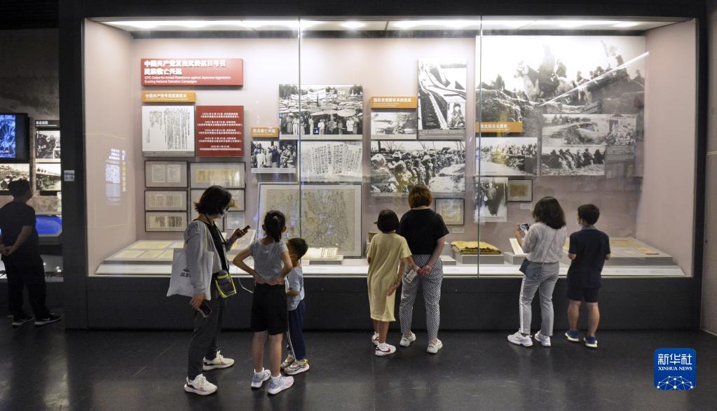 8月15日,觀眾在中國人民抗日戰爭紀念館內觀看展覽。