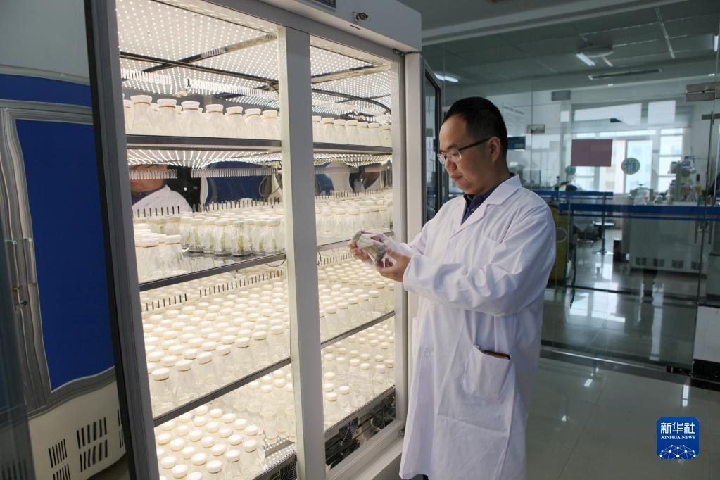 周雷在湖北省農業科學院糧食作物研究所實驗室開展科研工作(2022年4月14日攝)。