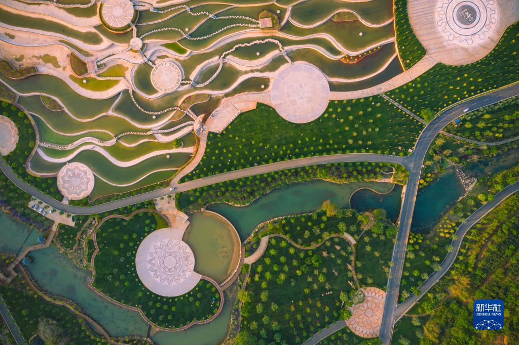 這是云南省彌勒市甸溪河濕地公園(無人機照片,2020年4月19日攝)。