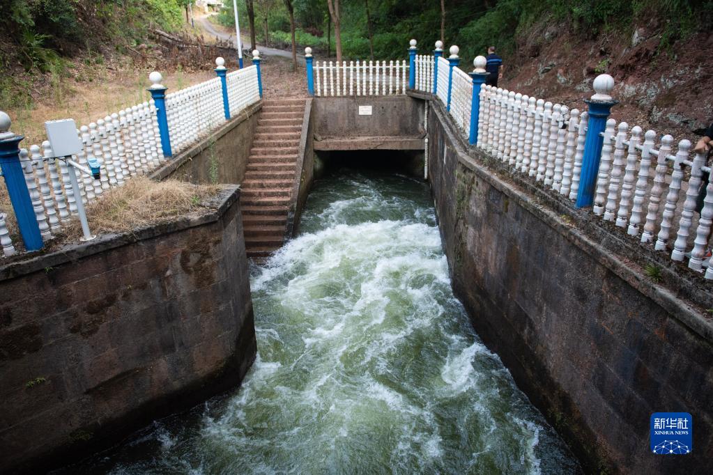 這是8月15日在桃源縣三里溪水庫干渠渠首拍攝的開閘后的景象。