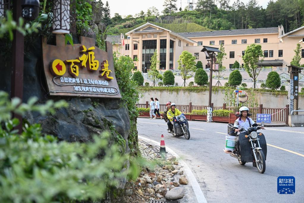 2022年6月22日,村民駕駛摩托車行駛在下黨村的公路上。