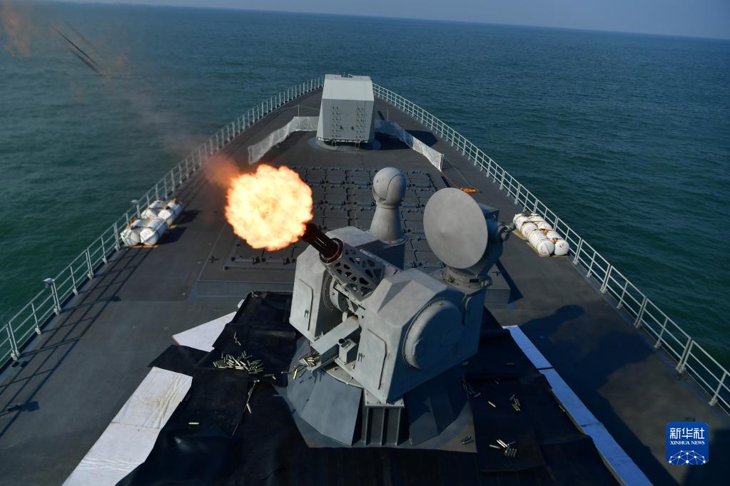 南昌艦組織副炮對空射擊演練(2019年11月26日攝)。