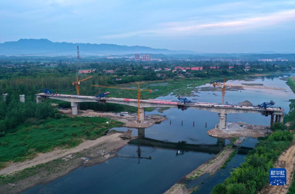 這是合龍后的宣績鐵路水陽江特大橋連續梁(8月16日,無人機照片)。
