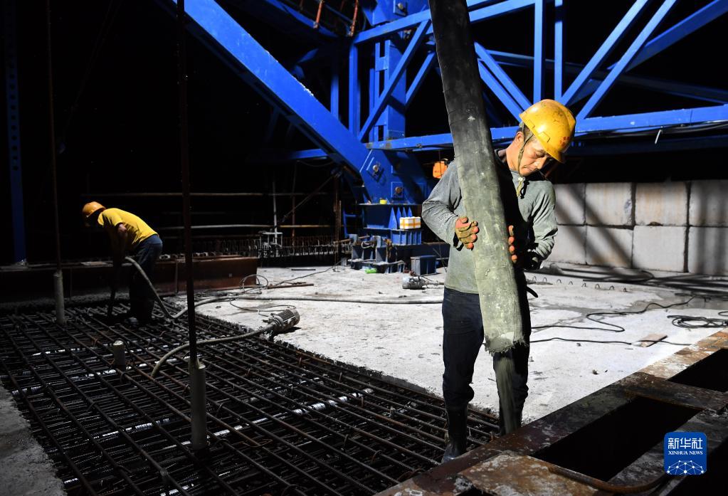 8月16日凌晨,中鐵五局施工人員在宣績鐵路水陽江特大橋連續梁合龍現場作業。