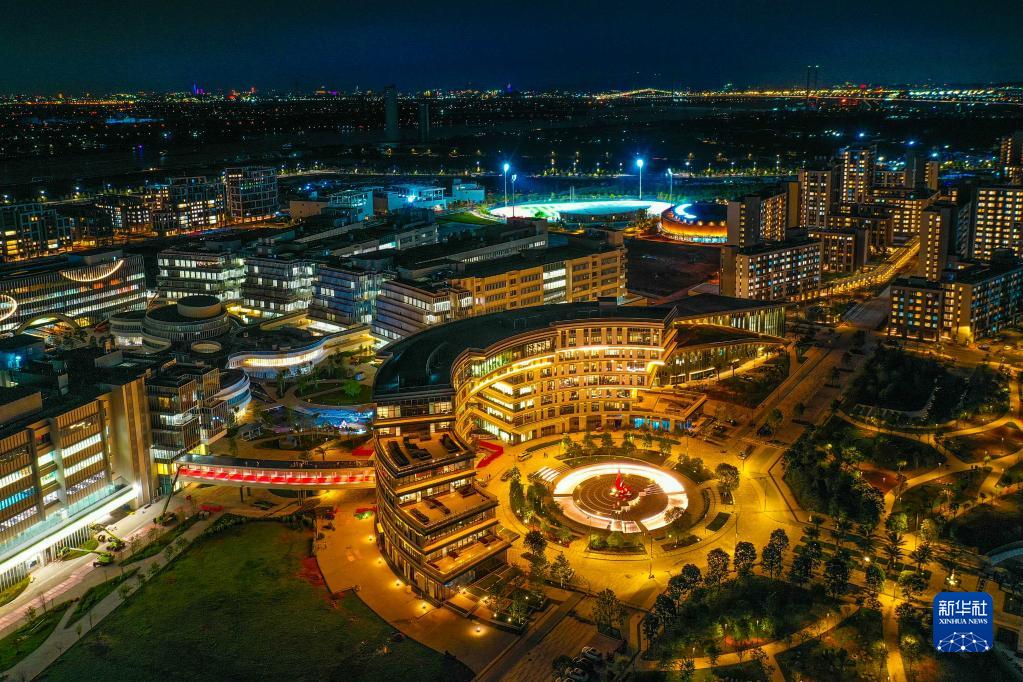 這是香港科技大學(廣州)校園夜景(8月15日攝,無人機照片)。