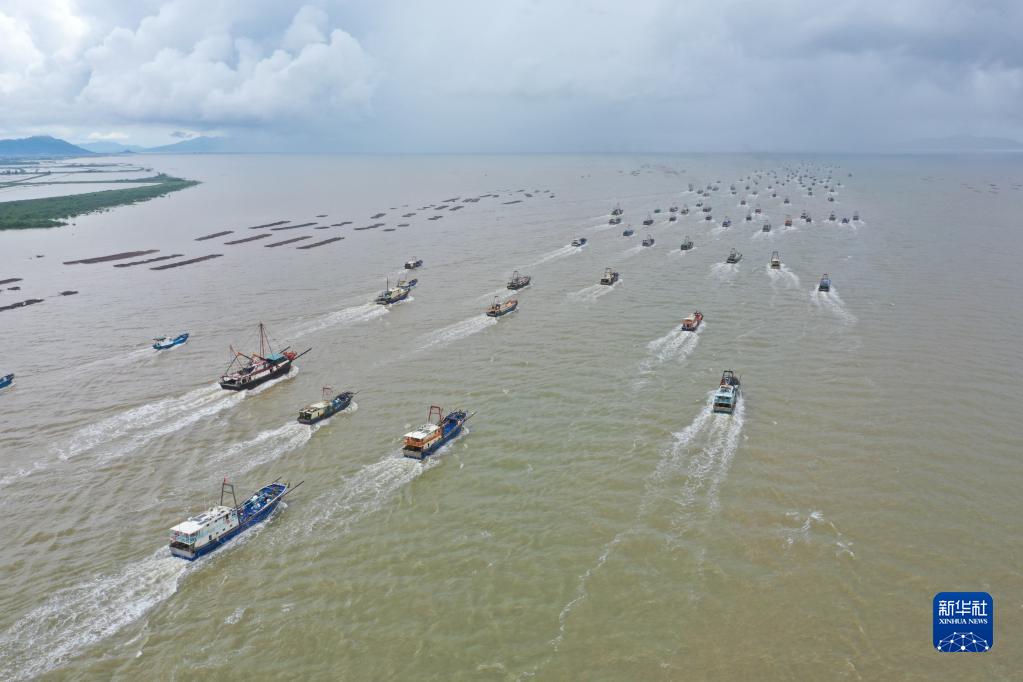 當日中午12點整,南海為期三個半月的伏季休漁期正式結束,停泊在廣東省江門臺山市汶村鎮橫山漁港的漁船駛向大海。