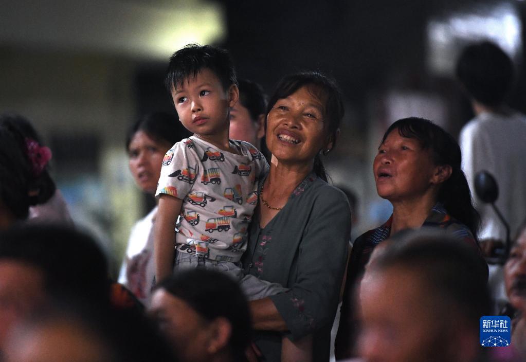 在江西省廣昌縣塘坊鎮大株村,村民在觀看木偶戲演出(8月10日攝)。