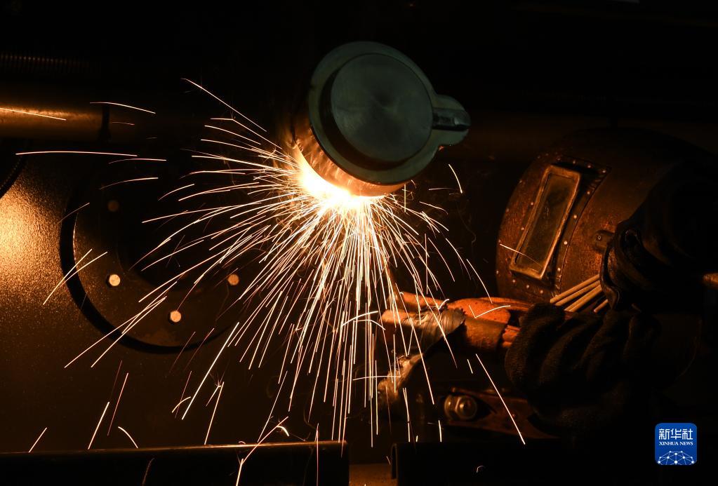 8月16日,廣州機務段職工在對機車部件進行焊接作業。