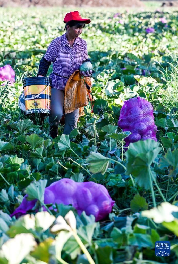 8月15日,種植戶在田間收獲貝貝南瓜。