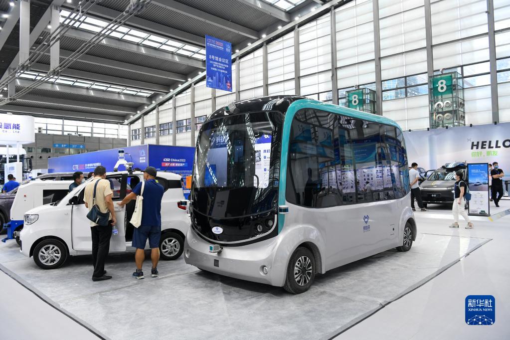 8月16日,觀眾在第十屆中國電子信息博覽會上了解自動駕駛汽車。