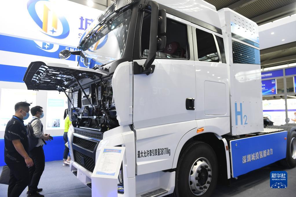 8月16日,觀眾在第十屆中國電子信息博覽會上參觀氫能動力重卡。