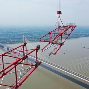 當日,位于安徽省銅陵市樅陽縣的長江跨越塔北塔封頂,標志著“西電東送”重點工程白鶴灘至浙江±800千伏特高壓直流輸電工程安徽段長江跨越塔全部組立完成。