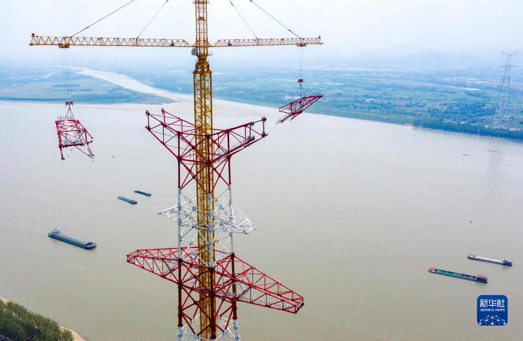 當日,位于安徽省銅陵市樅陽縣的長江跨越塔北塔封頂,標志著“西電東送”重點工程白鶴灘至浙江±800千伏特高壓直流輸電工程安徽段長江跨越塔全部組立完成。
