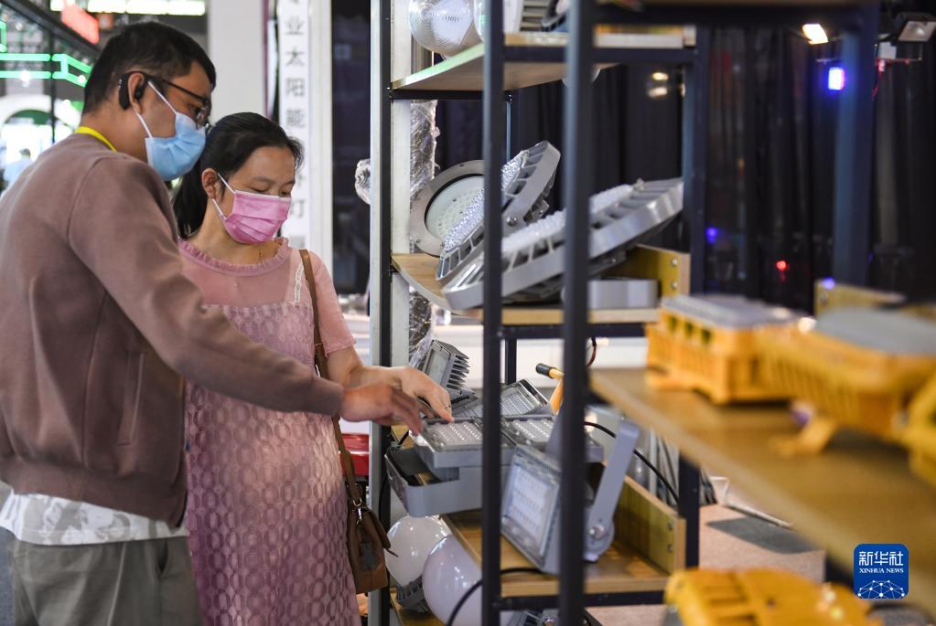 8月16日,在第六屆絲綢之路國際博覽會綠色產業館,展商為參觀者介紹綠色照明產品。