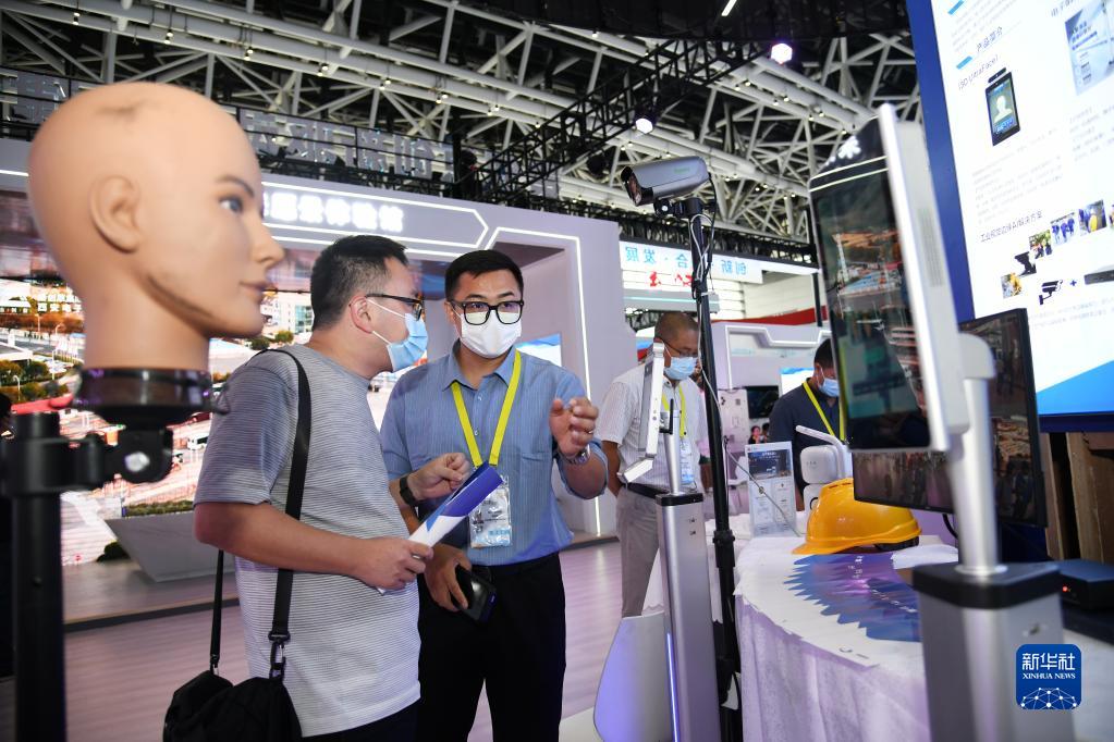 8月16日,在第六屆絲綢之路國際博覽會上,觀眾了解計算機視覺行業方案。