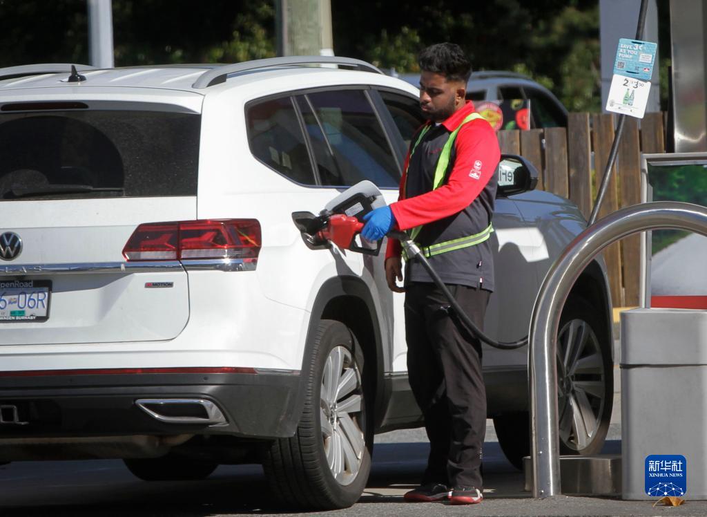 8月16日,在加拿大溫哥華一處加油站,一名員工為汽車加油。