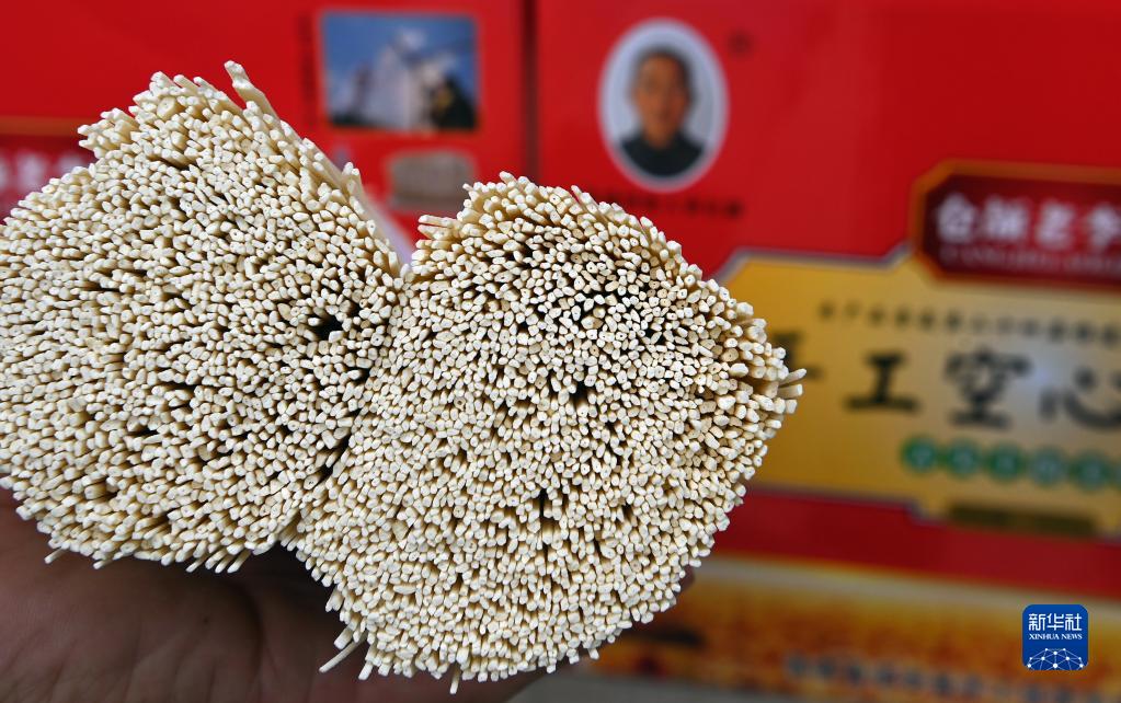 8月16日拍攝的李長滿銷售的成品空心掛面。