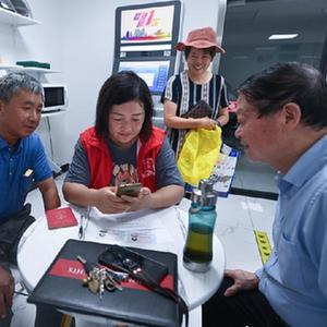 8月17日,在杭州市臨安區玲瓏街道東山社區便民服務站,黨員志愿者幫助居民填寫公租房申請資料。