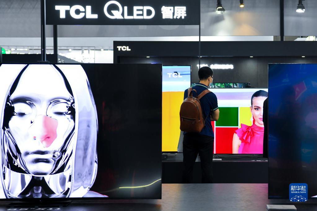 8月17日,在第十屆中國電子信息博覽會上,觀眾在TCL智屏前駐足觀看。