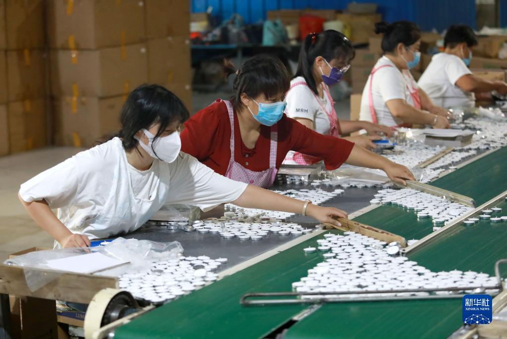 8月17日,在河北省石家莊市行唐縣一家外貿蠟燭生產企業,工人在分裝蠟燭。
