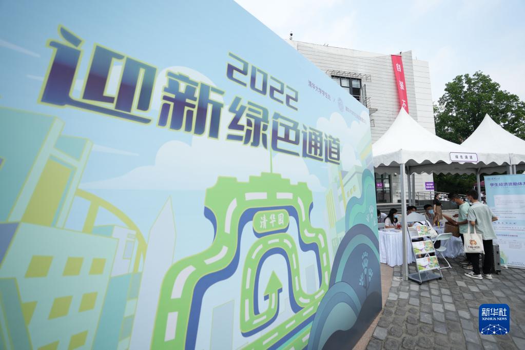 8月17日,在清華大學迎新點設立的迎新“綠色通道”處,學校工作人員為有需要的新生辦理無息臨時借款。