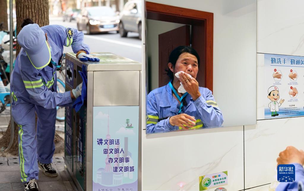 今夏上海的高溫天氣給戶外作業帶來嚴峻考驗。近日,在虹口區三河路上,一處新啟用的愛心驛站為附近的環衛、園林、市政等戶外工作者撐起“遮陽傘”。午間時段,在此休息的環衛工人們可以洗把臉,吹著空調聊聊天,清涼中透著融融“暖意”。