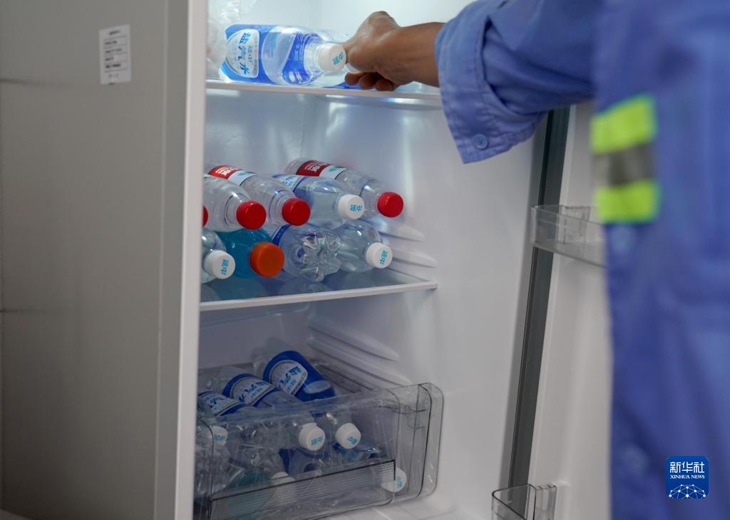 愛心驛站的冰箱內有免費的飲用水和鹽汽水(8月16日攝)。