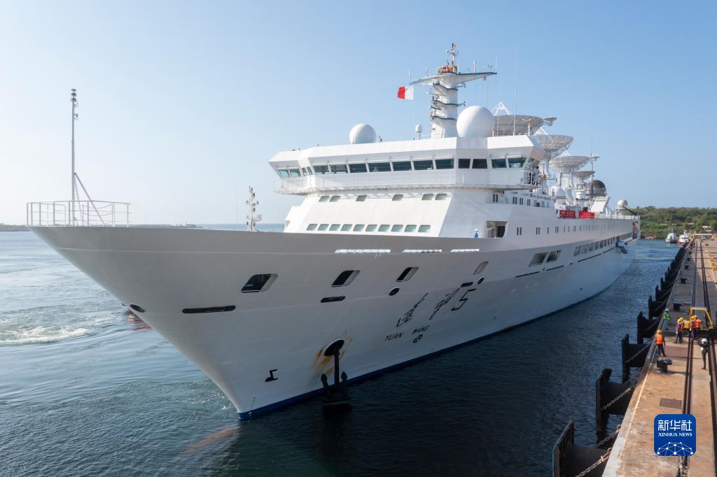 中國遠望5號船16日??克估锾m卡南部漢班托塔港,進行物資補給。中國駐斯大使戚振宏和斯政府官員、中資機構代表等在碼頭迎接。