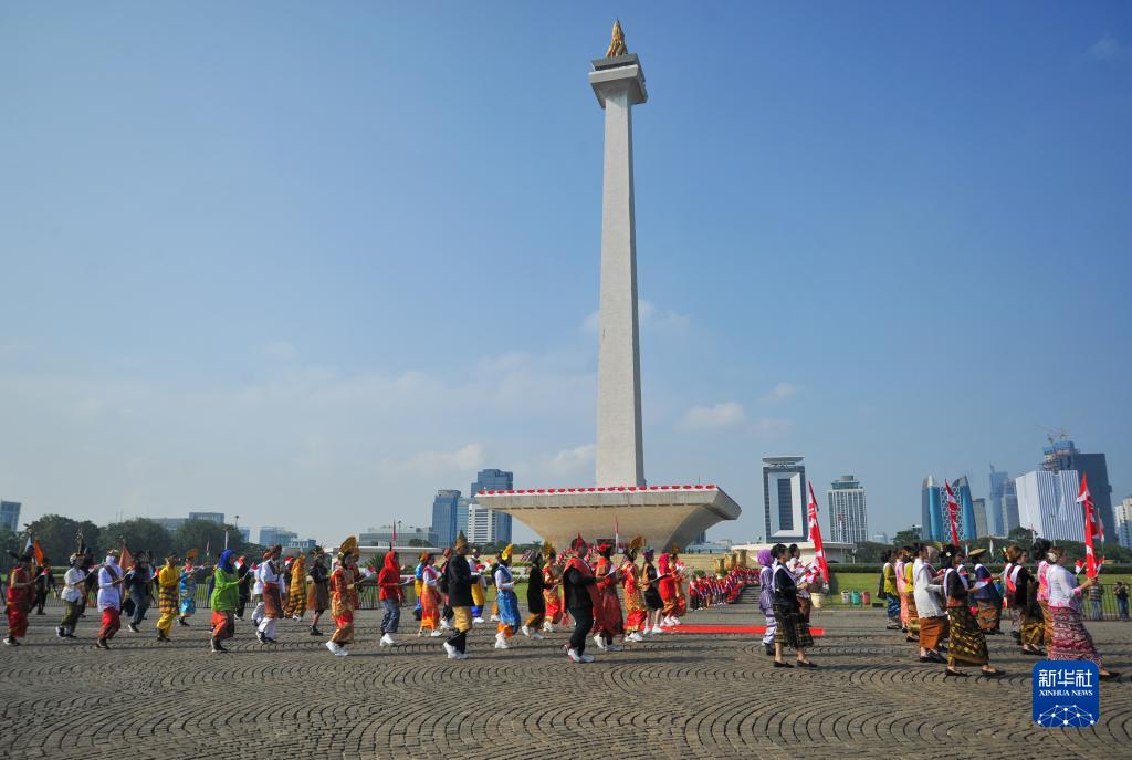 當日,印度尼西亞首都雅加達舉行獨立77周年慶?;顒?。1945年8月17日,印度尼西亞宣布獨立。