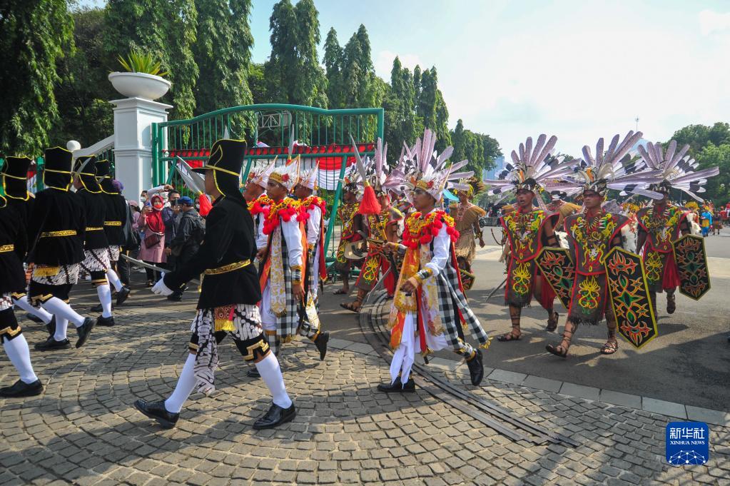 當日,印度尼西亞首都雅加達舉行獨立77周年慶?;顒?。1945年8月17日,印度尼西亞宣布獨立。
