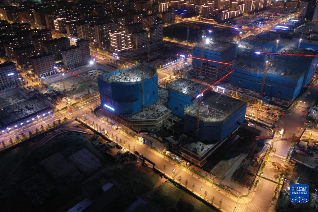 河北雄安新區容東片區雄安·電建智匯城建設項目夜景(8月17日攝,無人機照片)。