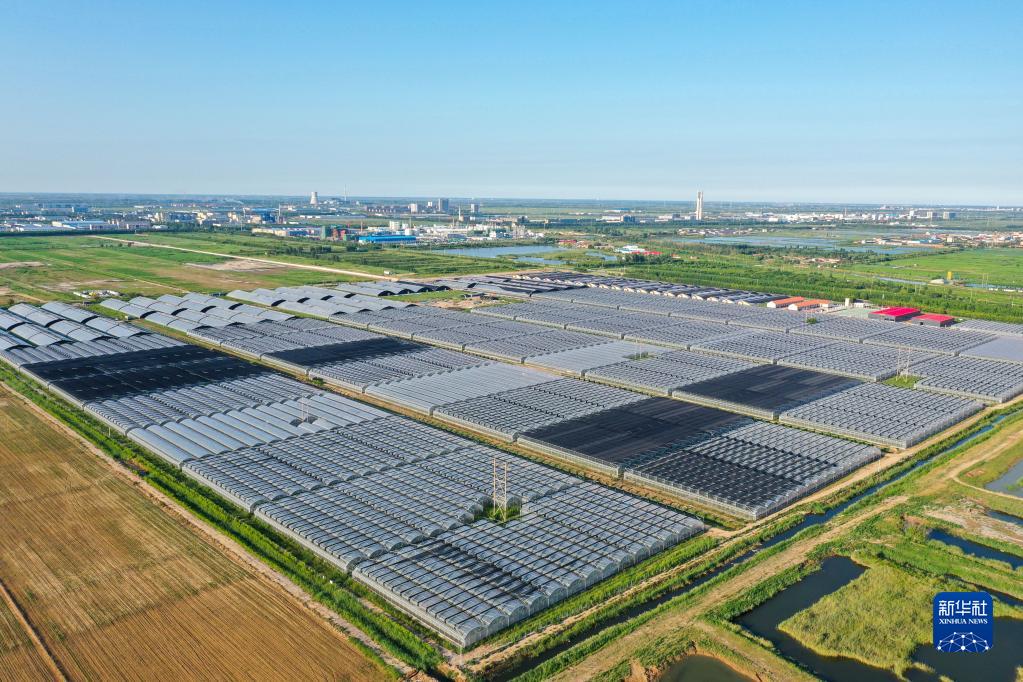 這是8月17日拍攝東營墾利區“田之源”鹽堿地綜合利用示范園(無人機照片)。