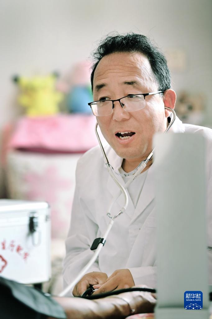 8月17日,村醫牛薛武在村民家為村民診斷病情。