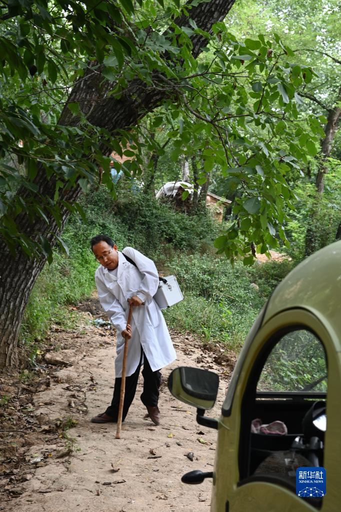 8月17日,村醫牛薛武駕駛殘疾人專用電動車出診,遇狹窄的道路,只好步行前住。