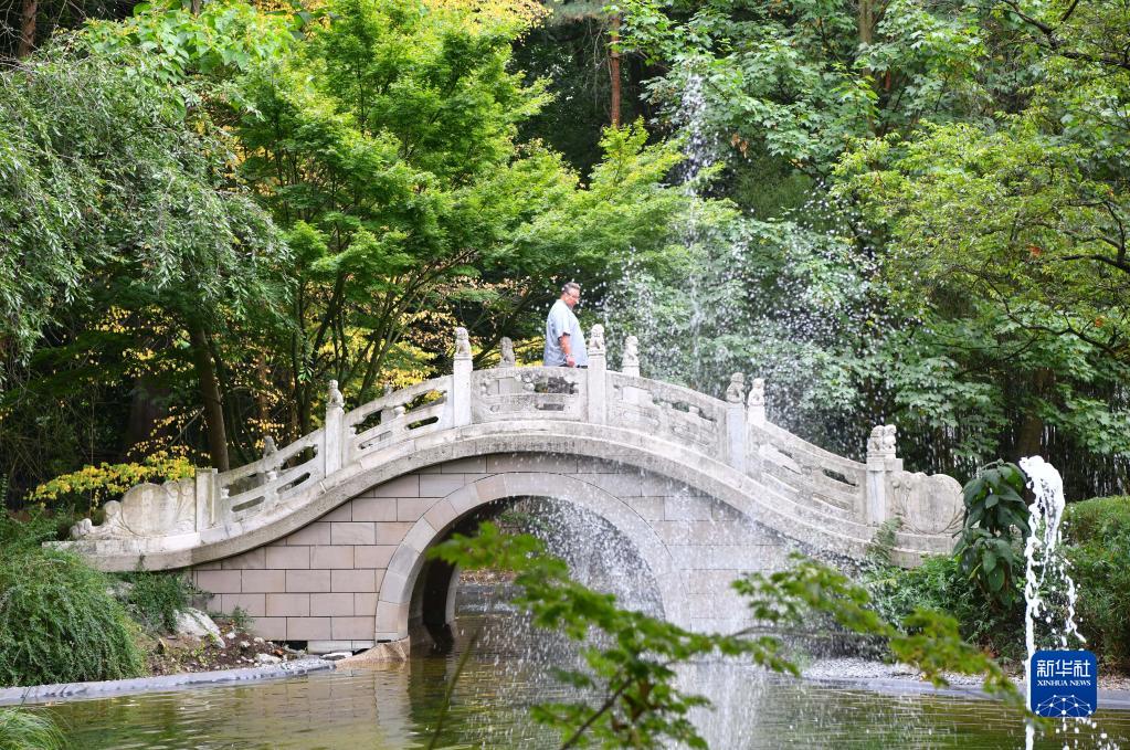 在中德兩國專家為期數月的全面修繕下,坐落在德國杜伊斯堡市動物園內的中國園林郢趣園17日重新開放,迎接游客到來。