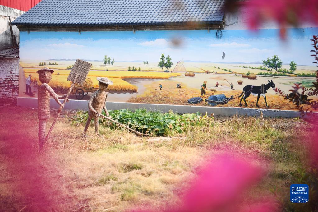 這是8月17日在河南省漯河市舞陽縣九街鎮胡崗村拍攝的農民畫墻畫。