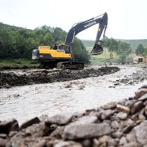 8月18日,受災群眾在青海省西寧市大通回族土族自治縣青山鄉清理淤泥開展自救。
