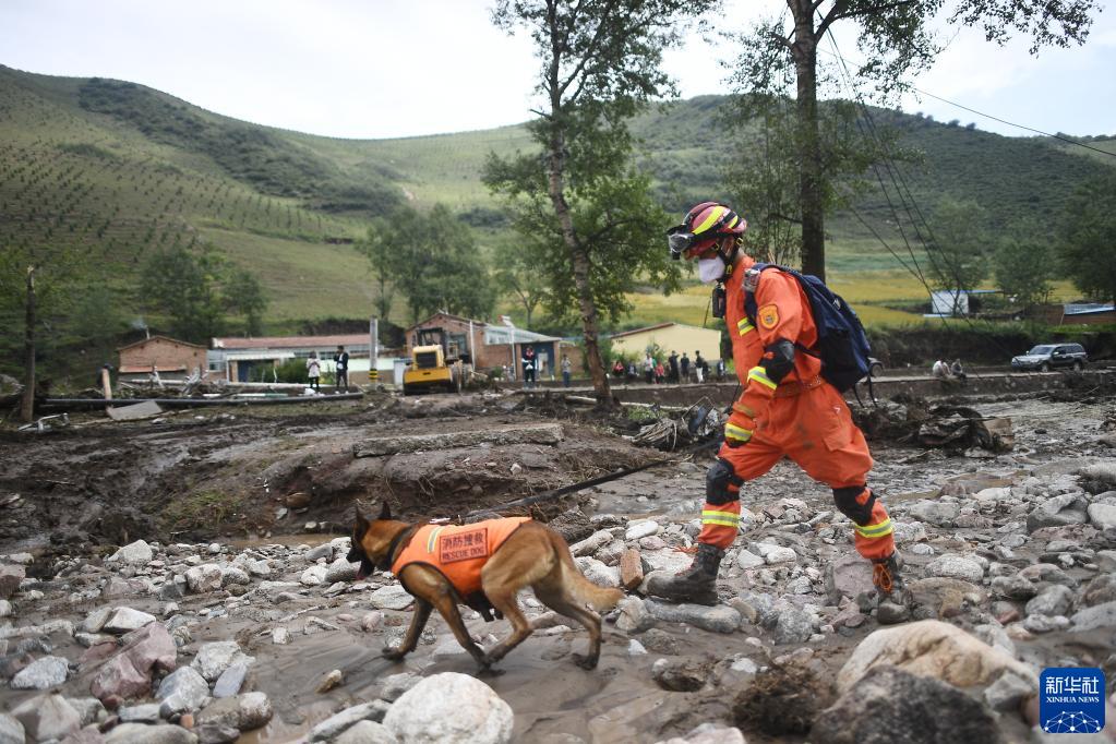 8月18日,消防隊員在青海省西寧市大通回族土族自治縣青山鄉沙岱村開展搜救。