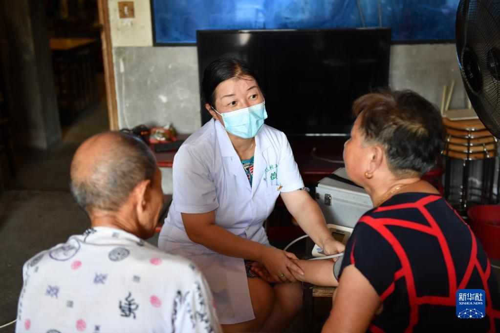 8月17日,顏新艷在村民家中量血壓。