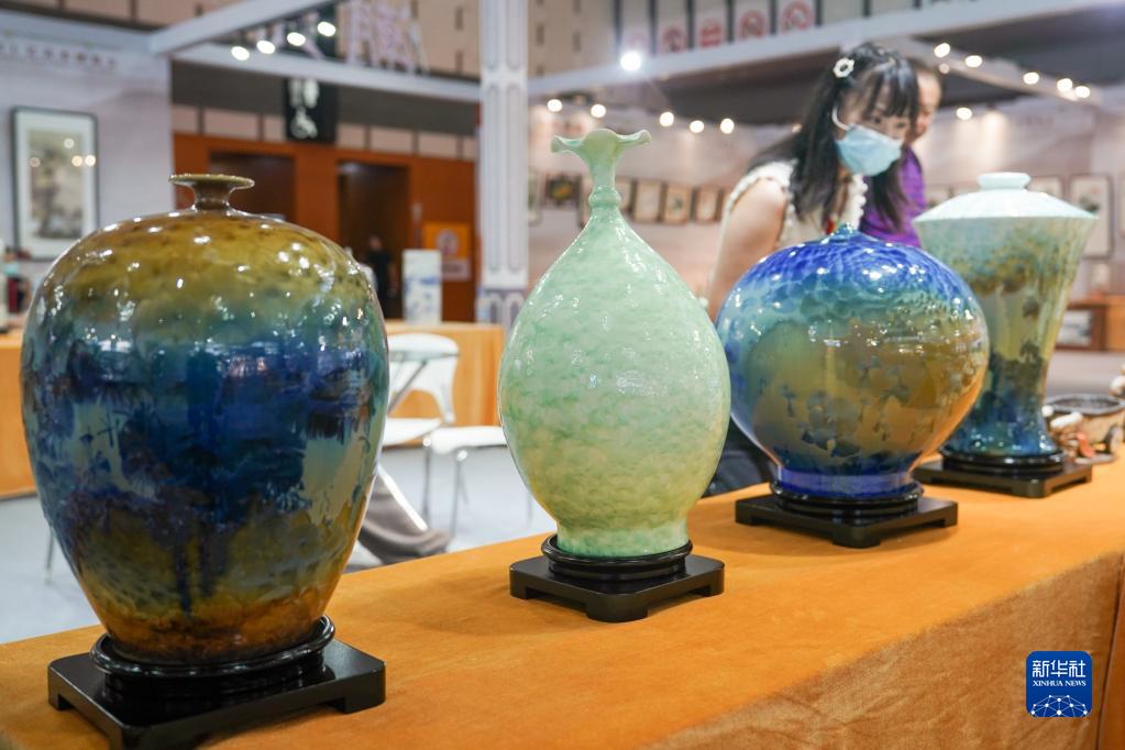 8月18日,觀眾在第二屆中國工藝美術博覽會參觀特色陶瓷藝術展品。